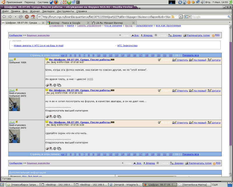 Ответ на сообщение Re: Шафран. 08.07.09. Среда. После работы. пользователя femid