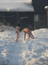 О! Гляньте-ка! За этой снежной женщиной бежит маньяк с бородой?ну надо же!!! и точно!