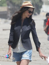 Я в прошлом году купила странную штуковину, льняную бандану с козырьком, украшеную кожаными цветочками.