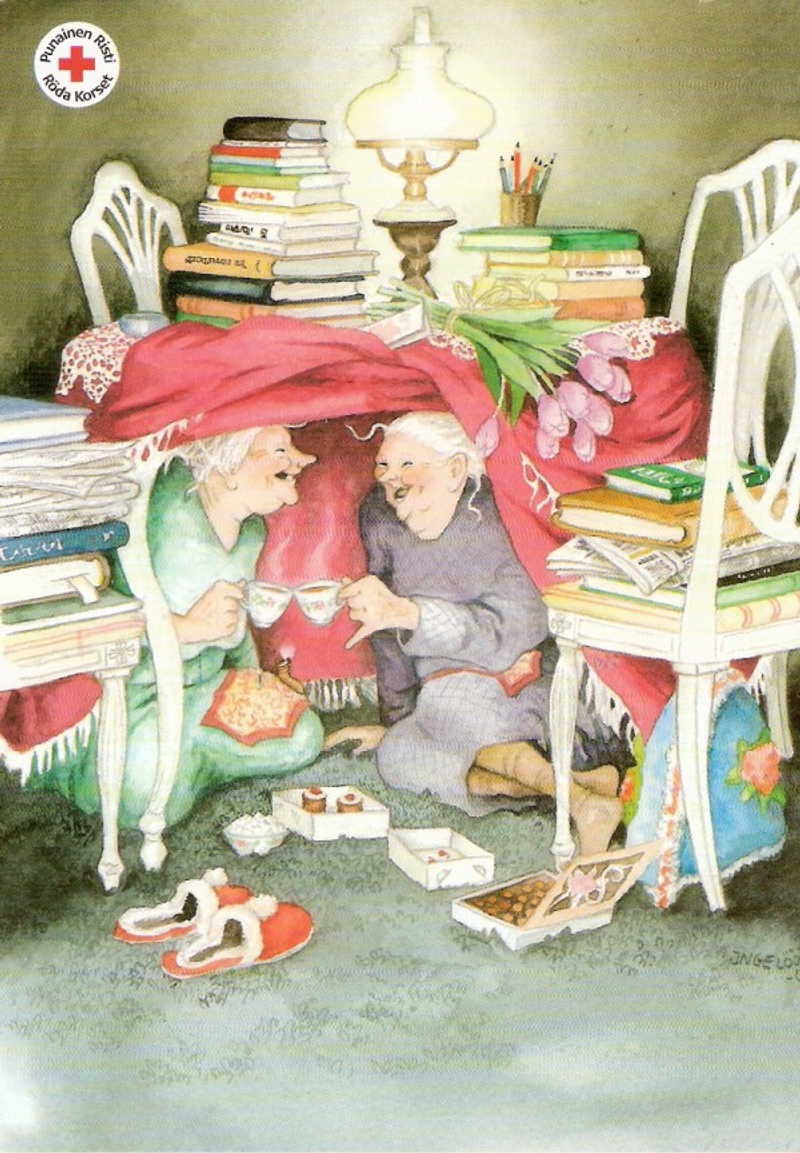 хотя человек же всегда должен ..быть в движении иначе "деградация"..хм из за этих тупых предрассудков закрадываются мыслишки...что жизнь пора б уже воспринимать как суровую реальность, а не игру..вот атк побродит и унесеца прочь)))отсавив легкий шлейф недоумения..ЗАЧЕМ ВЗРОСЛЕТЬ,,КОГДА ВСЕ ИТАК КЛЕВА!!!????и судрожно вздрагивать вспоминая..скока тебе в этом году стукнет и мерить жизнь отрезками четверти или трети жизни!вот есть такая художница финская Inge Look..самы е веселые старушки на картинках..скоре всего эт ее рук дело..погуглите..я прям влюбилась в них.