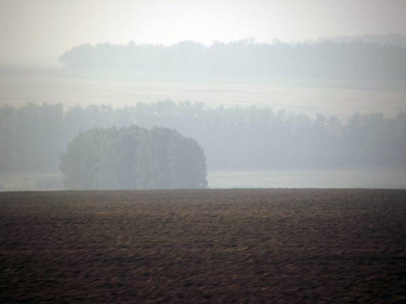 вот пятничная фотка с дороги по трассе на Краснозёрку: 50 м и ничего не видать, в городе как-то пояснее...это часов пять вечера-солнце ещё высоко