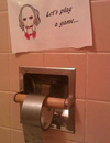 Я когда эту надпись впервые увидел, очень поразился. Мне так и представился натужно пыхтящий на толчке толстый потный маленький человечек, разглядывающий из-за приоткрытой двери проходящих по коридору людей и прислушивающийся к голосам, доносящимся из офисов.