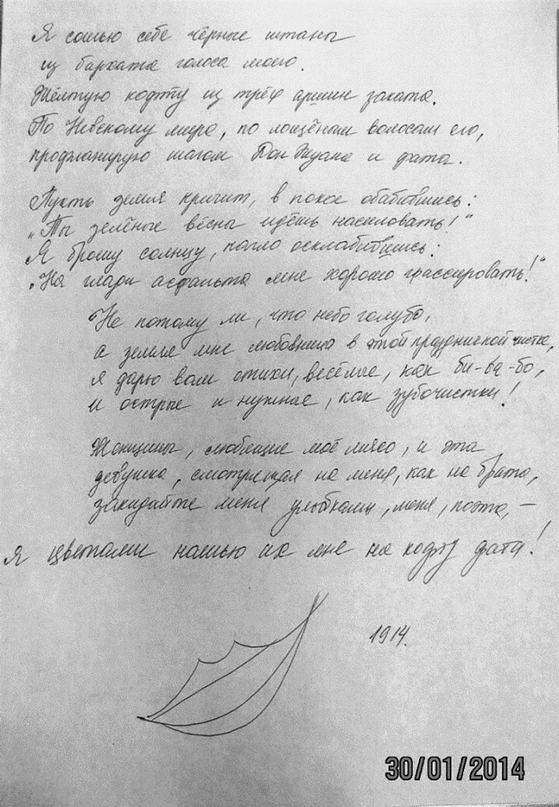 5.это вообще какое-то чудовище, склонна полагать, что это чудовище мужского пола..отвратительный почерк..вообще неприятный, очень как-то жутко от него.... и еще к тому же бумажка в линейку и запачканная вся..ващеее, не мог листочек взять нормальный чтоли, это точно не тетенька..тетенька не могла б се позволить писать на запачканой бумажке..да еще чернилами такого ужасного цвета..... в общем, я думаю, что человек с претензией..типа гений такой, но короче совсем непризнанный,но так ему и надо.. старается быть правильным во всем, но на самом деле малодушный, старается казаться уверенным оптимистом..а сам нудный , противный и пессимист..фуу в общем.конечно,я пишу характеристику и подозреваю конкретного человека..если это окажется не он..а такое может быть..то я просто бы сказала .что почерк никакой..так пишут люди, которые себя идентефицировать боятся сами...препарировать и внутри ниче не обнаружить
