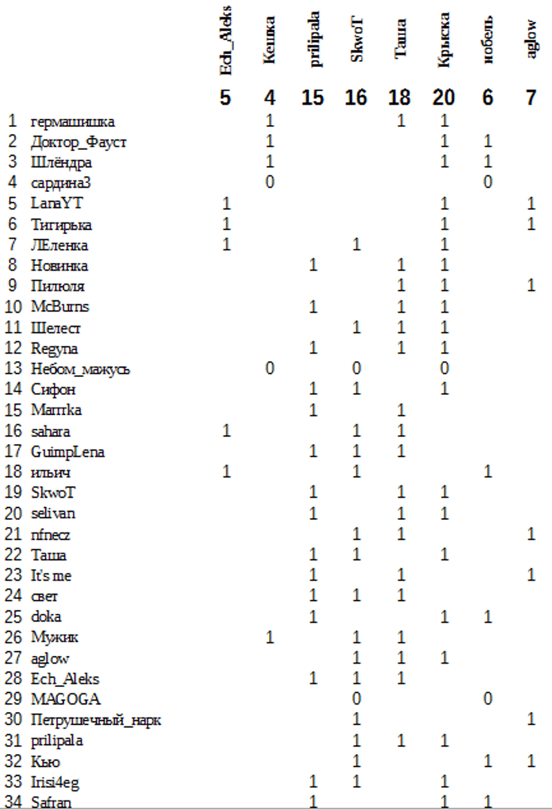 Таблица подсчета голосов представлена ниже.