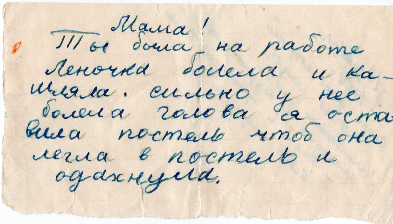 • Мои родители сохранили записку 1966года.