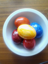 А пока вот вам... )) Здесь варёные и крашеные яйца продаются КРУГЛЫЙ год, и стоят на удивление на копейки всего дороже сырых ))) И главное, так художественно покрашены, блестящие ! :-)))