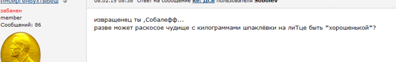 я то давно все понял и за примерами далеко ходить не надо, только вот почему-то именно мое зОбаню вызвало такой шквал эмоций, двойные стандарты ?Э!!!"Я фольклёрный элемент!У меня есть документ..."©![]()