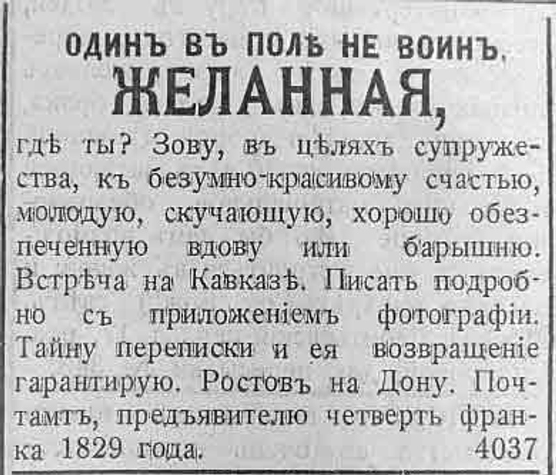 Ответ на сообщение Re: Объявления, как литературный жанр пользователя Upjohn