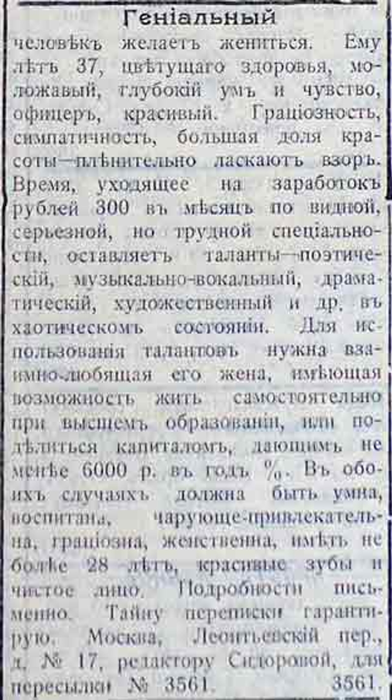 Ответ на сообщение Объявления, как литературный жанр пользователя wsoroka