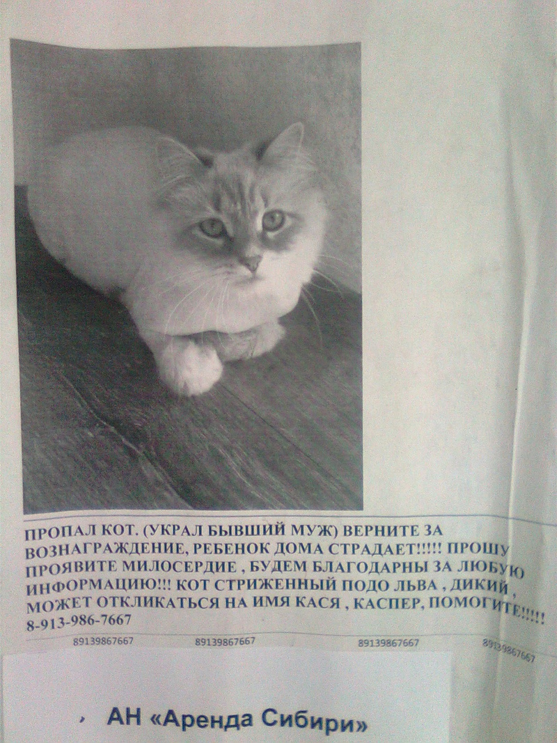 Буду постить объявления, которые можно читать как "Войну и мир" или хотя бы как "Отелло"