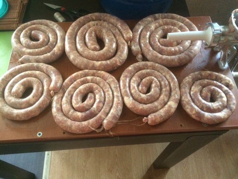 На вкус свиная с чесноком и салом кусочками оказалась очень даже ничё... А по себестоимости - в полцены от магазинной. При этом мясо брали не дешёвое - шею на фарш и окорок на кусочки...