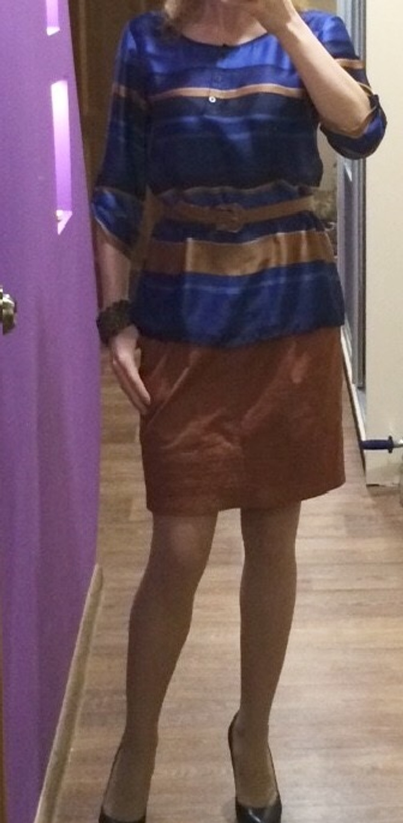Обожаю такой кобальт. Туфли не нра. Сюда бы ботинки комбат от брунелло кучинелли, вот что сюда бы. И там что, ОПЯТЬ телесные колготки?