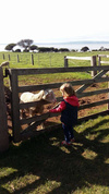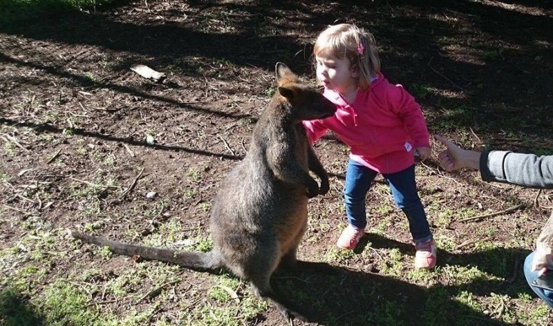 Дочь долго готовилась к тому, чтобы погладить лису, набиралась храбрости, а потом вдруг резко бросилась к зверьку и принялась гладить. Лиса не долго терпела это безобразие и сбежала в будку.