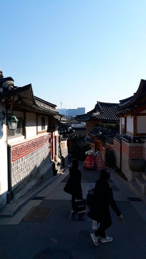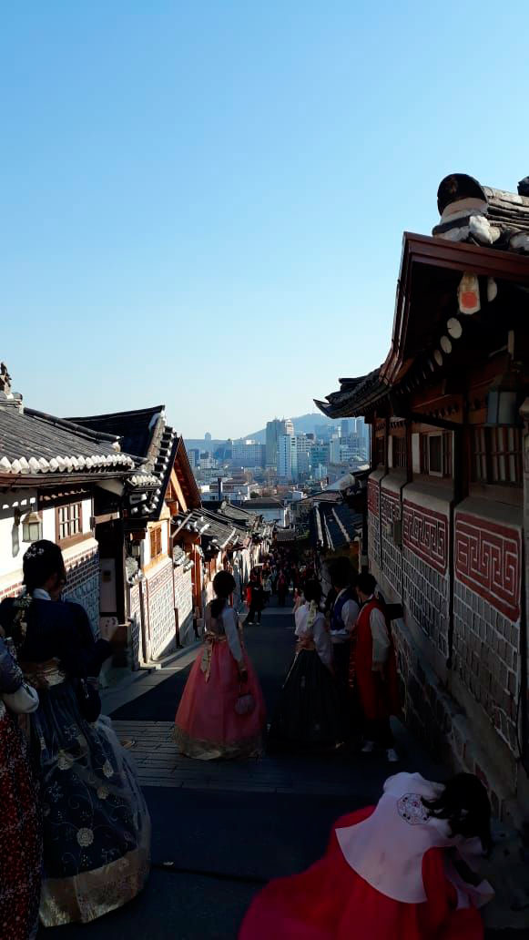 В Сеуле, особенно старой части, на амосферность очень работает пространство. Нашей равнинной линейности и плосткостности там нет. Все время нужно куда-то на 3 ступеньки подняться, куда-то перейти и развернуться...