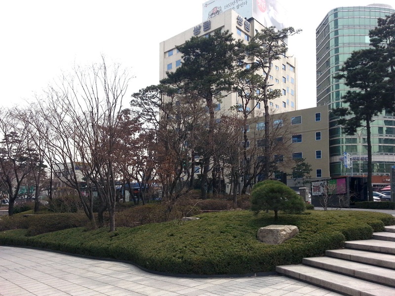 1988 год, студенческие волнения против диктатора Ли СынМана. Многие помнят их по хронике в Известиях. Я, по крайней мере, хорошо помню. Кстати, президент Пак КынХе, которой пару лет назад объявили импичмент, его дочь. Так вот - эта фото эстакады, на которой разбит парк Сеулло. Вдалеке - купол старого здания Соуль_ёк. И этот же купол видно сквозь сосны на предыдущих фото. Можно оценить перемены.