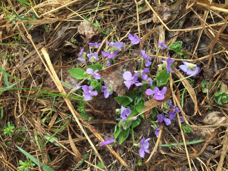В округе на бывших лесных дорожках, нынче сквозные дачные проезды уже цветут дикие фиалки и медунки.