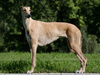 я даже породы такой не знаю, но ноги задние у него как у кресла-качалки деревянной, как у кенгуру, но округлые, и выше лабра см на 10 в холке, а хозяйка его кричит *не бойтесь, он игривый, щенок ишшо*