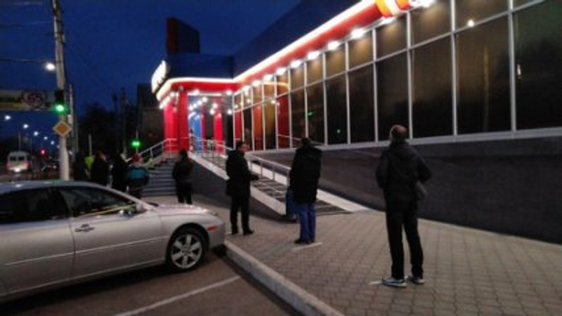 Во-вторых, в магазин впускают по одному- несколько человек, вся очередь вынесена на улицу и есть разметки, где стоять