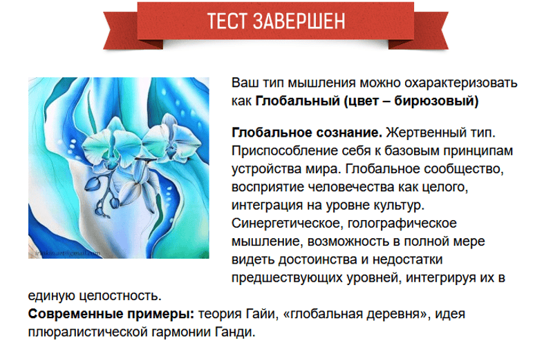 Ваш тип мышления можно охарактеризовать как Глобальный (цвет – бирюзовый)