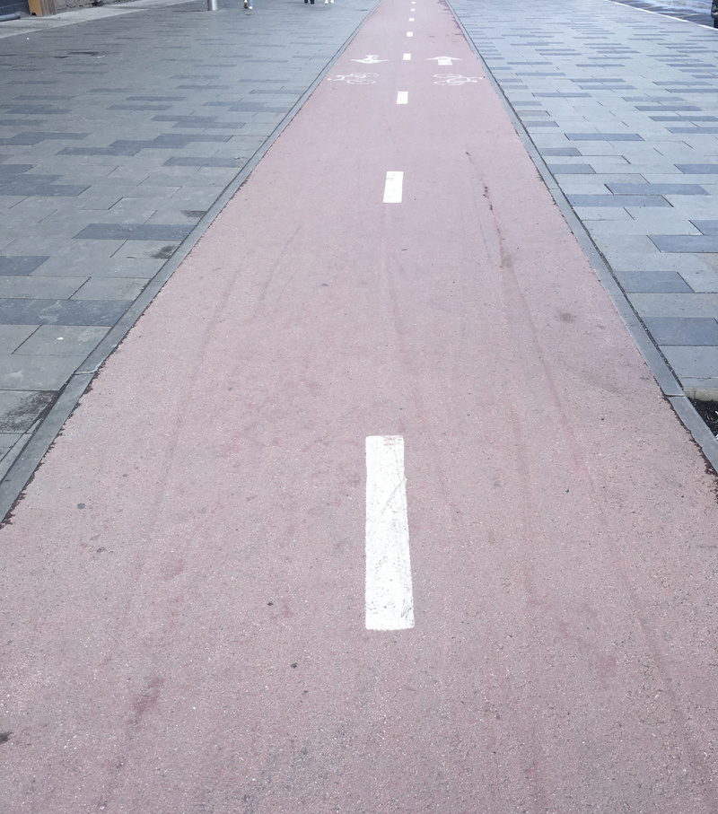 А тут выхожу на улицу пошире, а не прям около дома - глядь, зря я так переживала, даже сфотала. Велосипедистов, правда, ни одного не встретила, пока там ходила, но верю в востребованность этих дорожек все равно.не узковата?