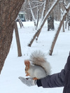 Она по несколько штук в рот запихала, жадина. Тоже здоровая, как конь! )То, что не съедается моментально, закапывается. Потом забудет куда спрятала.