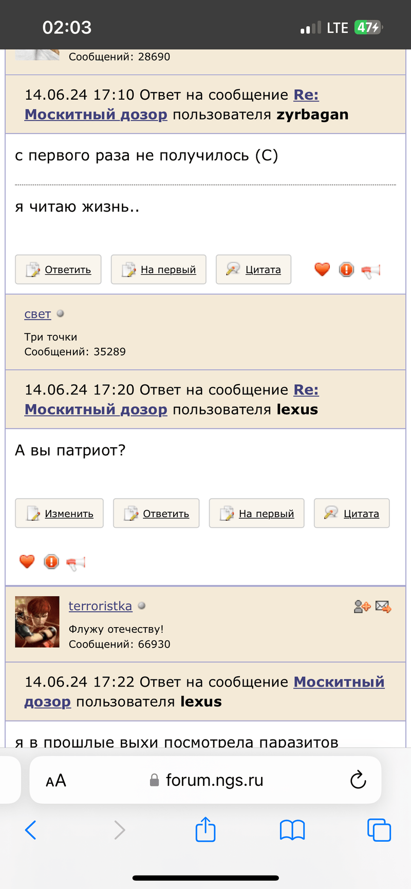Ответ на сообщение Re: Москитный дозор пользователя GuimpLena