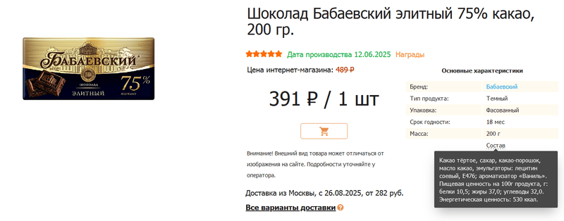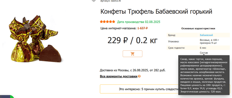 Бабаевский давно не тот. В РФ не делают хороший шоколад, тем более по 100-200 рублей за 100 граммов, он наверняка чем-то разбодяжен. Попробуй, например, трюфели из Бельгии, сразу почувствуешь разницу.даже пробовать не готов после прочтения состава![]()