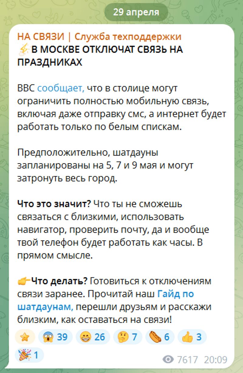 в моем районе, как в москве. опять начали жестить и даже белые списки в ауте. нет мобильного инета от слова совсемв моем тоже самое, мобильный инет совсем не фурычит, временами отрубается и мобильная связь, грешным дело задумываюсь, а не вернуть ли стационарный телефон, там может и модем пригодитсяозон опять открывает только ш/к на получение, банкинг не работает и прочие прелести жизни.