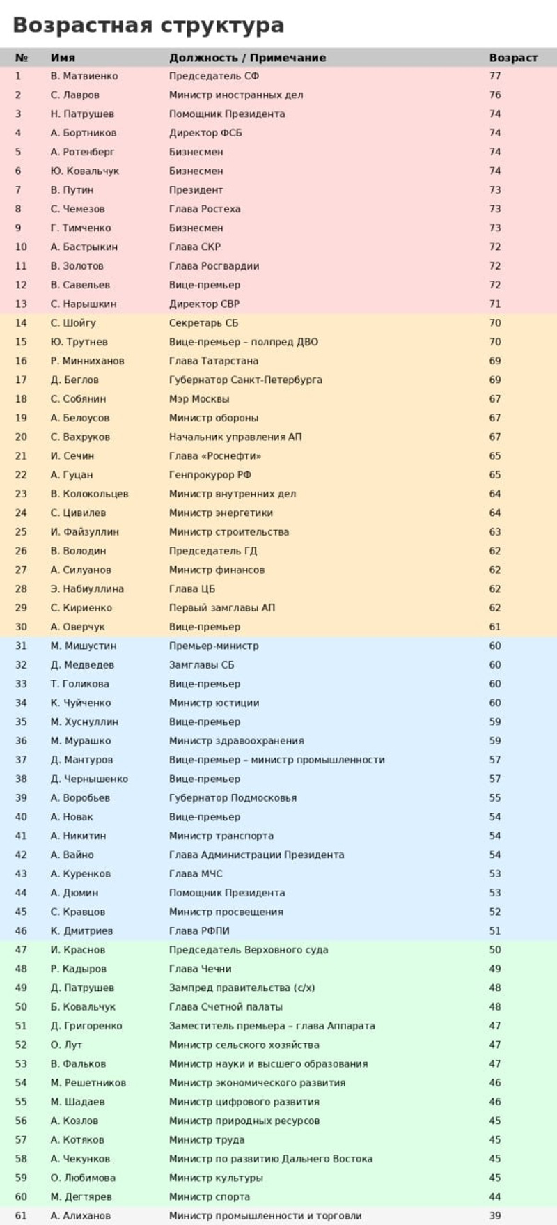 не, просто он дед.Формирование геронтократии является ещё одним маркером возврата к позднесоветской модели. Средний возраст ключевых фигур в списке уже перешагнул 70-летний рубеж. (С)