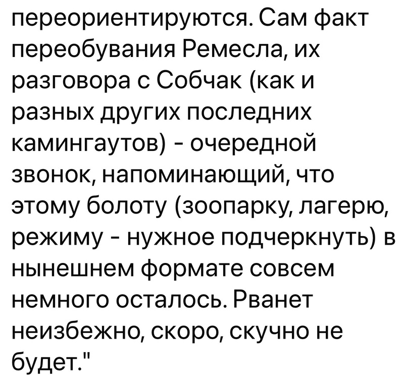 Забавное интервью вышло Ремесло-Собчак. Подумать интересно.и Шендерович (иноагент) про это интервью пишет, Кучера (тоже иноагент?) репостит. Придется смотреть.