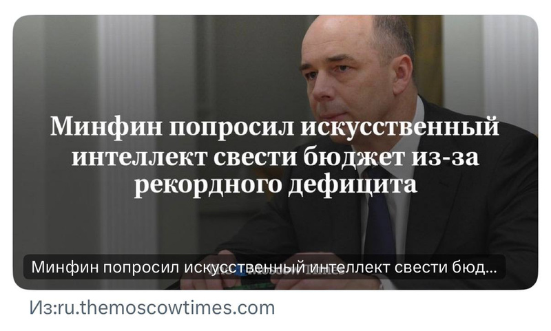 *Министр экономического развития Максим Решетников публично признал, что резервы российской экономики исчерпаны.*печатный станок сломался или бумага закончилась?))) по-моему других резервов у нас уже лет 5 как нет от слова...))