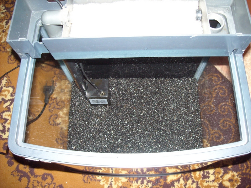 Засыпаем грунт. Чёрный . Немного мелковат, но, учитывая, что водозабоник под грунтом - некритично.