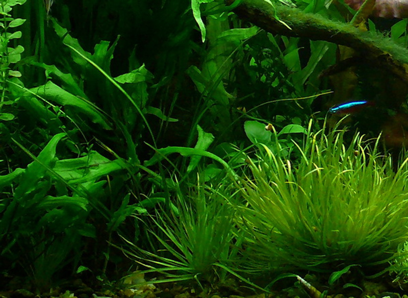 Да, неонов сюда. С десяток нормально. Когда-то в этой банке жили около десятка неонов и около 5 крапчатых сомиков. Ну а то, что креветок есть будут, да, какую-то часть съедят, но не всех ить. Часть в траве уцелеет. Зато и перенаселения не будет.