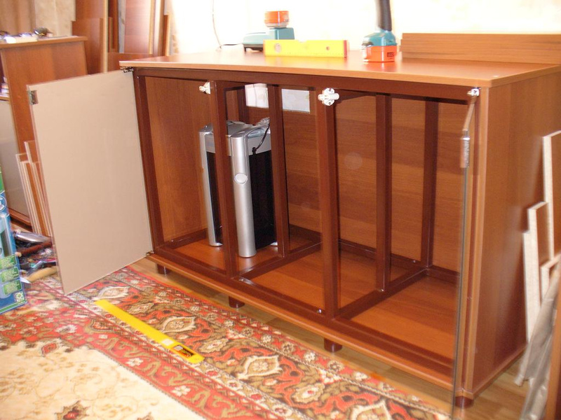 Итак, если Фиалка будет не против, выложу пару фоток тумбы, на которую поставим 377 литров.