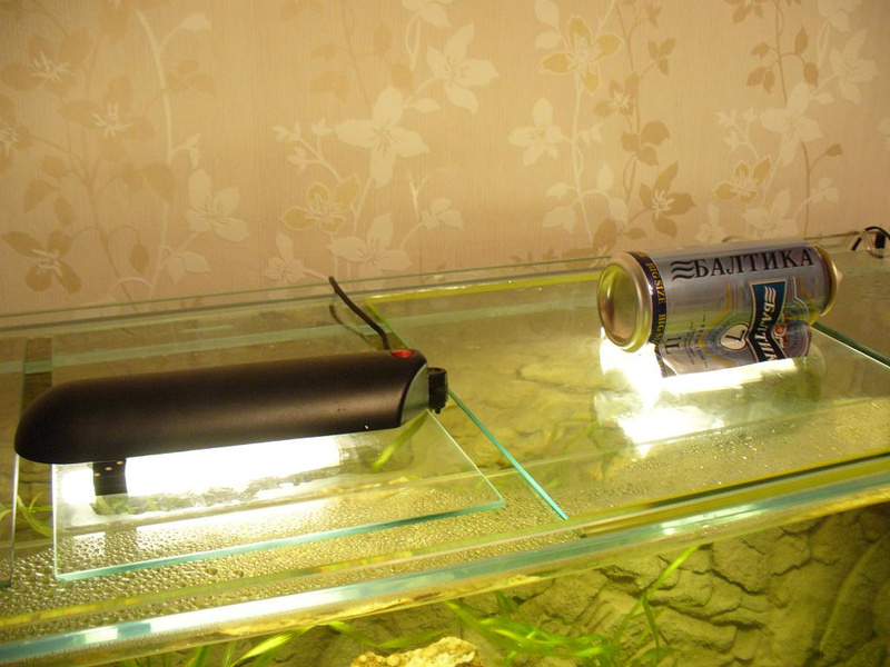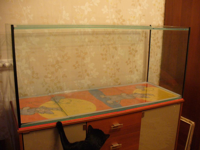 Так, стекло 10 мм. Ребра шириной 8,5 см, передние приклеены к стенкам, у задних есть зазор для шлангов канистры. Т.к. банка восьмерочная, мастер согласился их сделать.