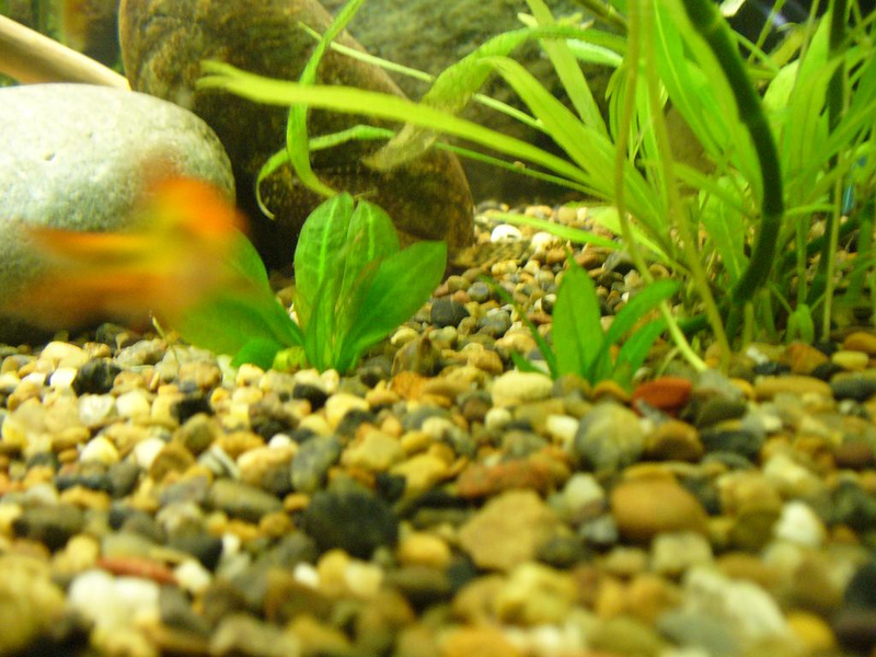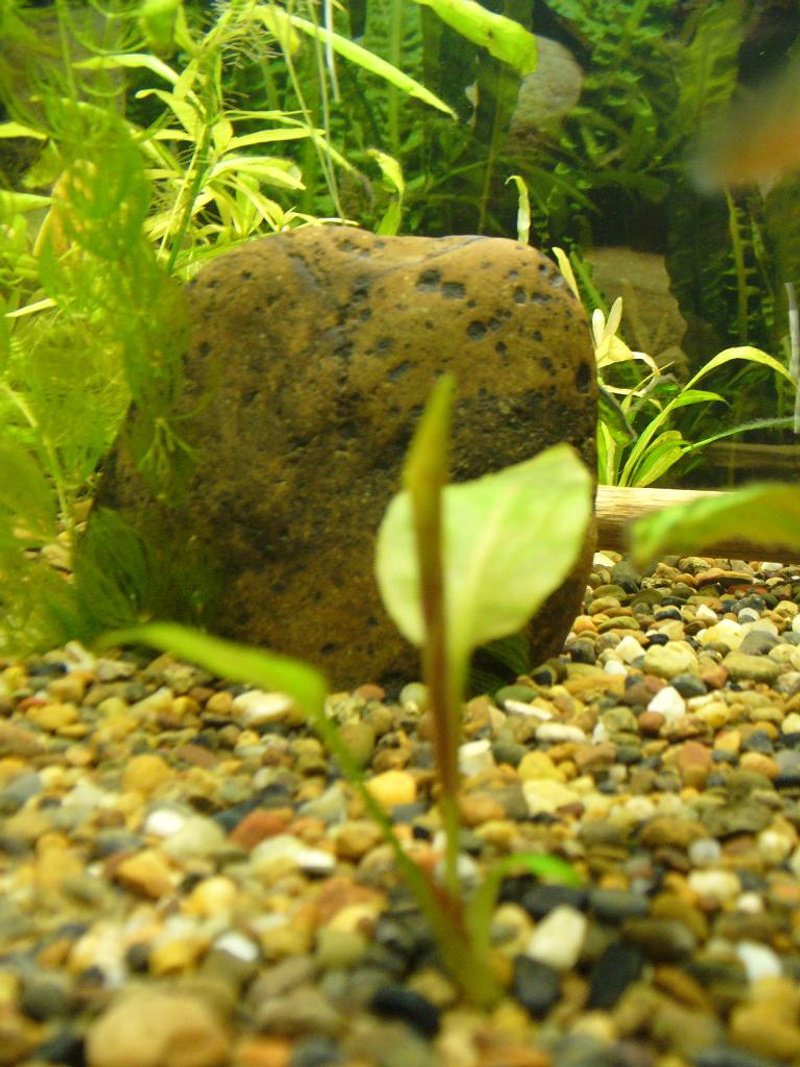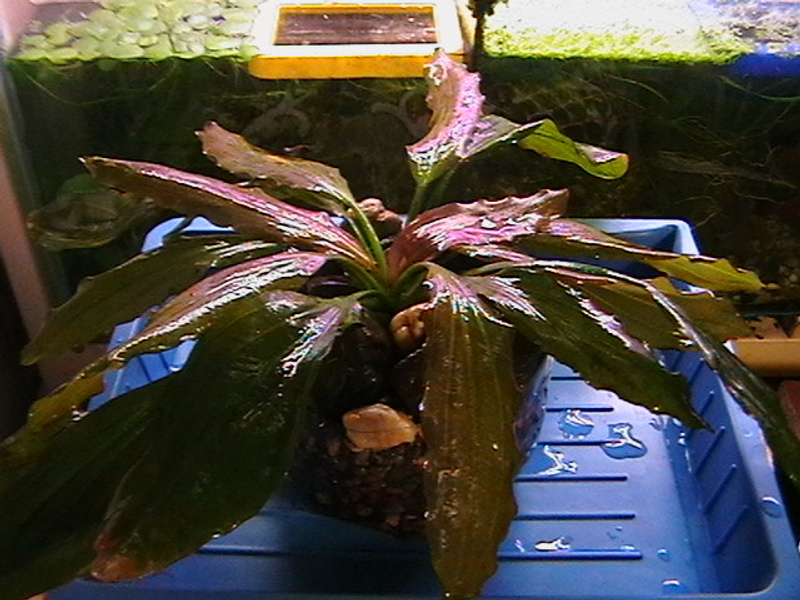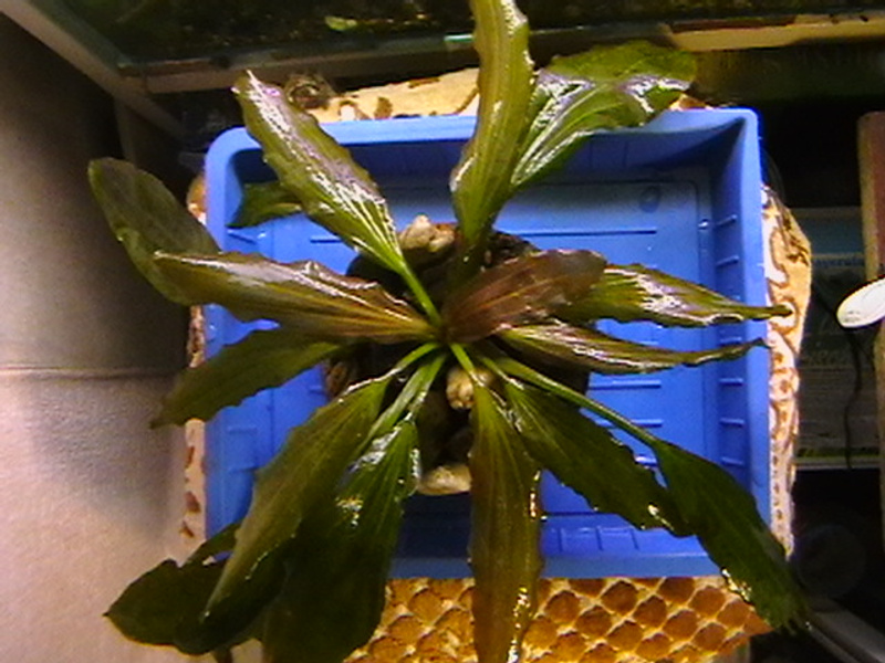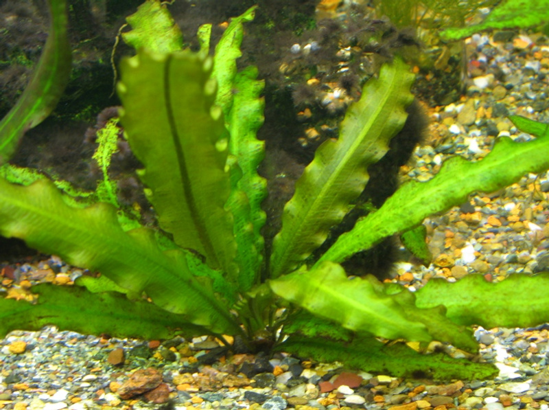 Качество не очень, но второй эх я бы опознал как эхинодорус остроконечный (Echinodorus mucronatum). Он же невысокий такой, см 15?Конкретно этот вообще см 3 высотой. Когда покупали, был высокий, см 10. Потом изошел на деток, которые и сфотаны.