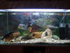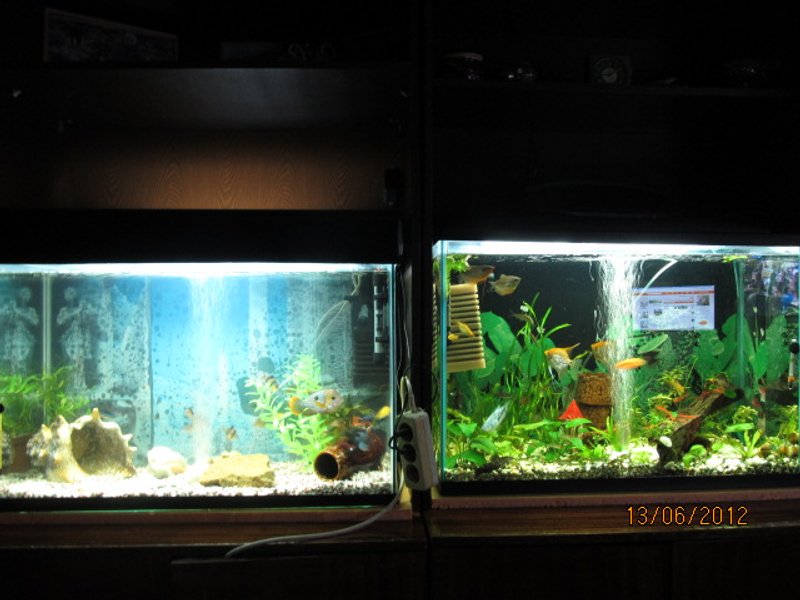 как только приехала на место, рыб в ведро с компрессором, залила воды из под крана примерно пол аквариума, включила фильтр, и вечером перевела рыб в аквариум, воды доливала уже потом, с каждым днем по ведерку