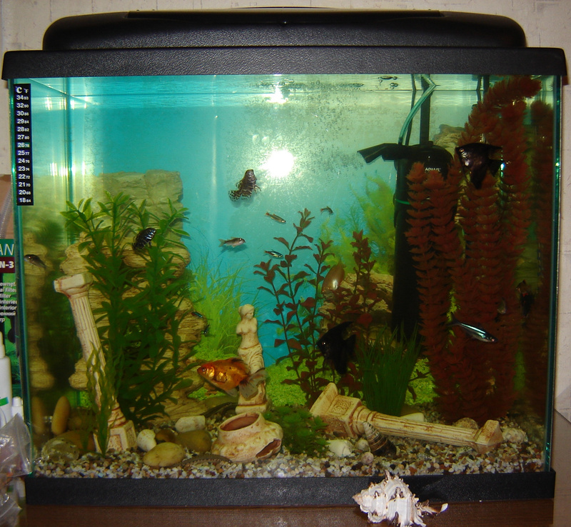 Отдам аквариум 90 литров со всеми имеющимися сопутствующими материалами: крышка (лампу необходимо поменять), грунт, гроты-колонны-амфоры (на фотографии представлено не все, что имеется), фильтр.Многократная бронь, поэтому можете больше не спрашивать. Отдам уже отписавшимся.