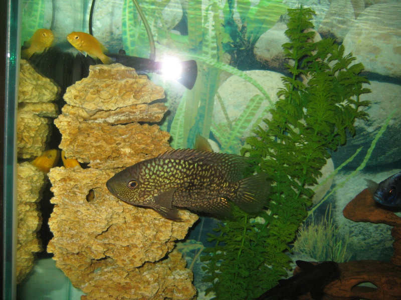 Что за зверь в центре? Приобрел по случаю, а вот кого??? Цихлазома...но какая?По-моему жемчужная,у меня бриллиантовая такая,а они похожи очень