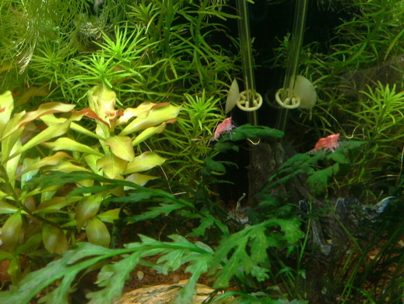 Оставшихся креветок (10 шт.) пересадил пока отдельно в 3 л объем, добавил грунт и ветку роголистника. Иначе миноры покосят их поголовье (миноров 5 шт.).
