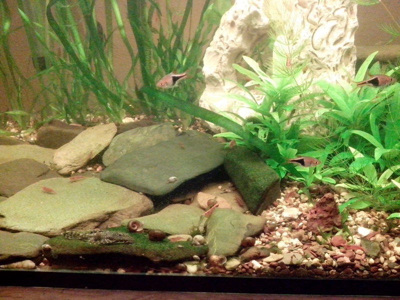 2.мои аквариумы, конечно, не шедевры и конкурсов не выиграют, но и на забытые болотца совсем не похожи, мне и моим близким доставляют эстетическое удовольствие. (Даже фотки приложу. Из свежего. Аквариум запущенный 2 месяца назад. Еще не зарос как следует.)