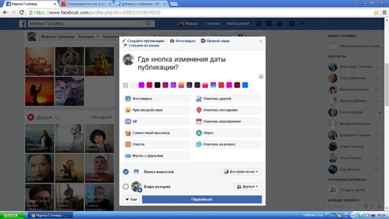 И вот первый. Как на личной странице сделать отложенный постинг. Нигде нет кнопки редактировать дату. Помогите как это сделать! На ютубе много роликов предыдущих лет, у них эта функция есть. Почему у меня нет?