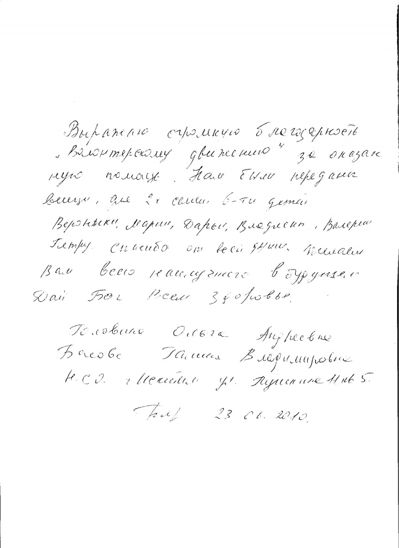Ответ на сообщение Re: Благотворительность Отдаете вещи - знаем кому надо пользователя Новикова Марина