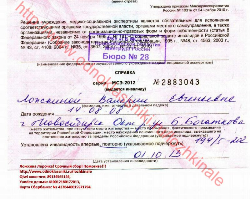 Также есть очень удобный и быстрый способ помощи: Вы можете помочь не выходя из дома. У кого есть карта Сбербанка и подключена услуга мобильный банк: отправляете смс на номер 900 с текстом "89039355812 100", где 89039355812, 89231561655, 89134569483, 89134565144 - это номера для пожертвований, а 100 - это сумма Вашей помощи.