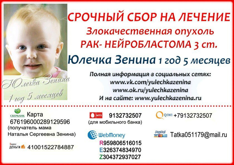 Помочь Юлечке можно сделав перевод на реквизиты: