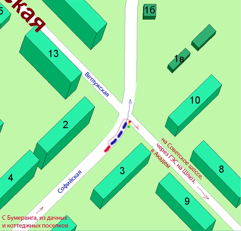 Но самое интересное Частенько происходит на перекрестке с Ветлужской.