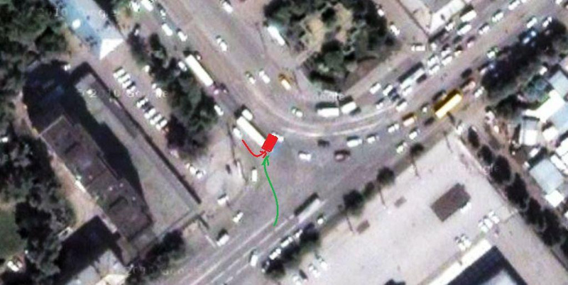 Они же справа доезжают...ПоГАИшной схеме тут вроде такое возможно, но если наложить на спутниковое фото (см. выше) становится очевидно, что вариант "доезжания" (завершения маневра) исключен. Нет, маневр то он конечно завершил :), но вот что за маневр? Это не езда, а сюрреализм какой-то...