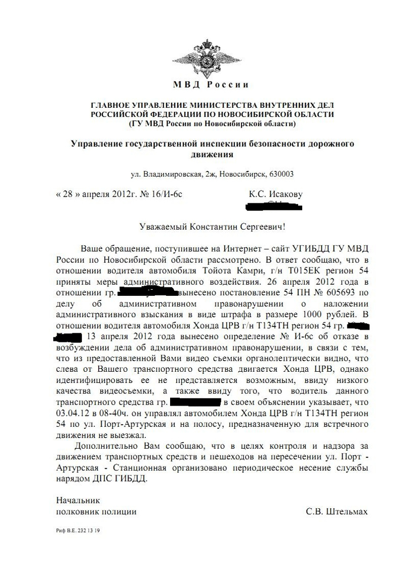 Сегодня с утра в почте обнаружил ответ из ГИБДД.