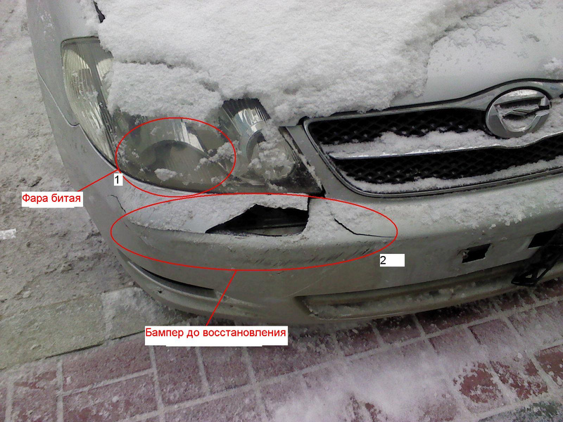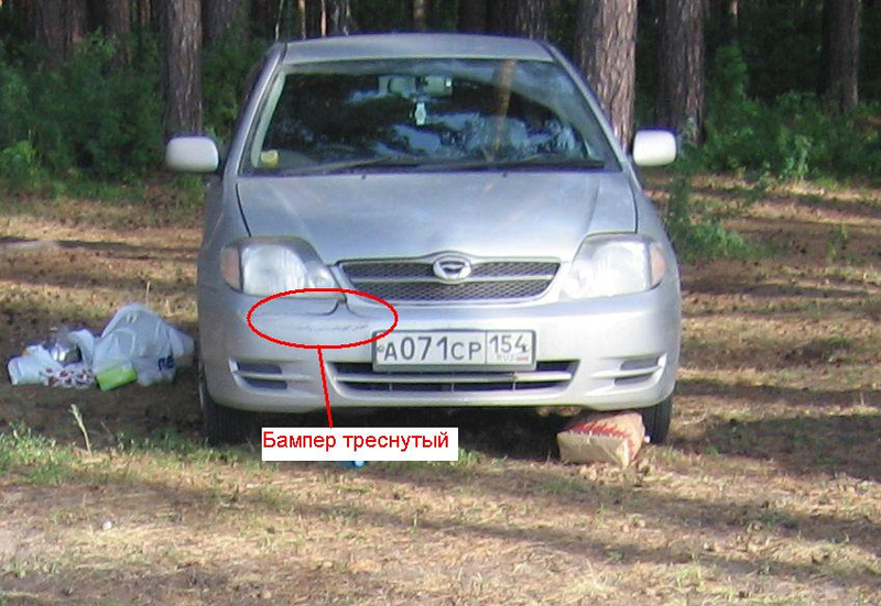 Треснутый передний и задний бампер.