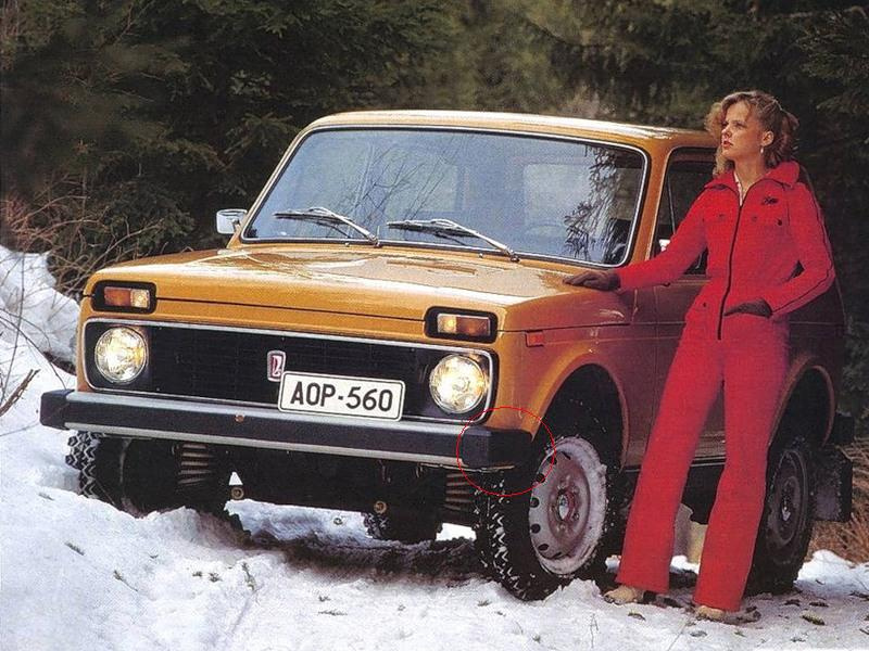 А когда то были резиновые.Честно резину не помню, но нива кажись была начала девяностых. Клыки на переднем бампере были пластик 100%. Потому как когда прикипевший бампер дергали, он этим пластиковым клыком крыло покоцал.